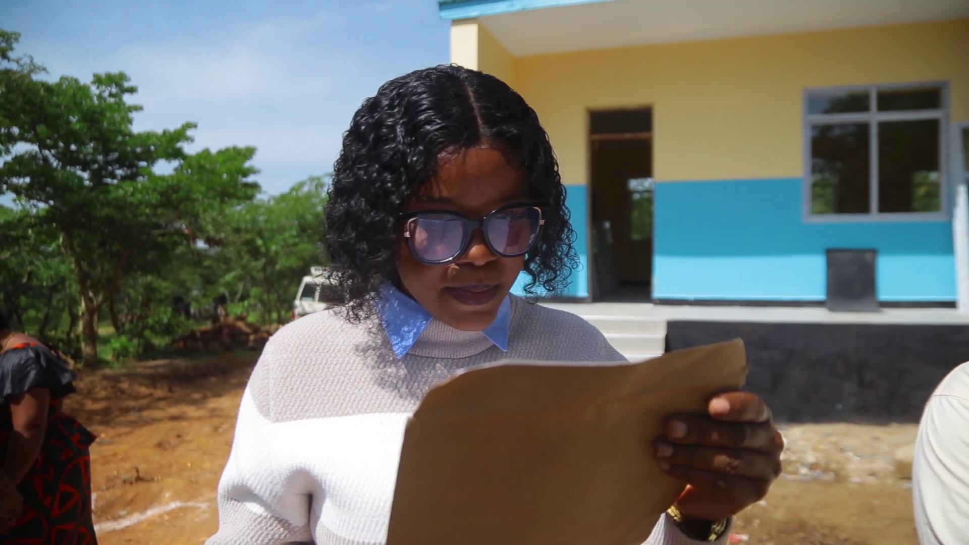 Bi Sarah Emmanuel Mtendaji wa Kata ya Sangambi akisoma taarifa ya utekelezaji wa Mradi wa ujenzi wa Shule ya awali na msingi inayojengwa katika kata ya sangambi mbele ya Kamati ya Fedha, Utawala na Mipango ya Halmashauri ya wilaya ya Chunya