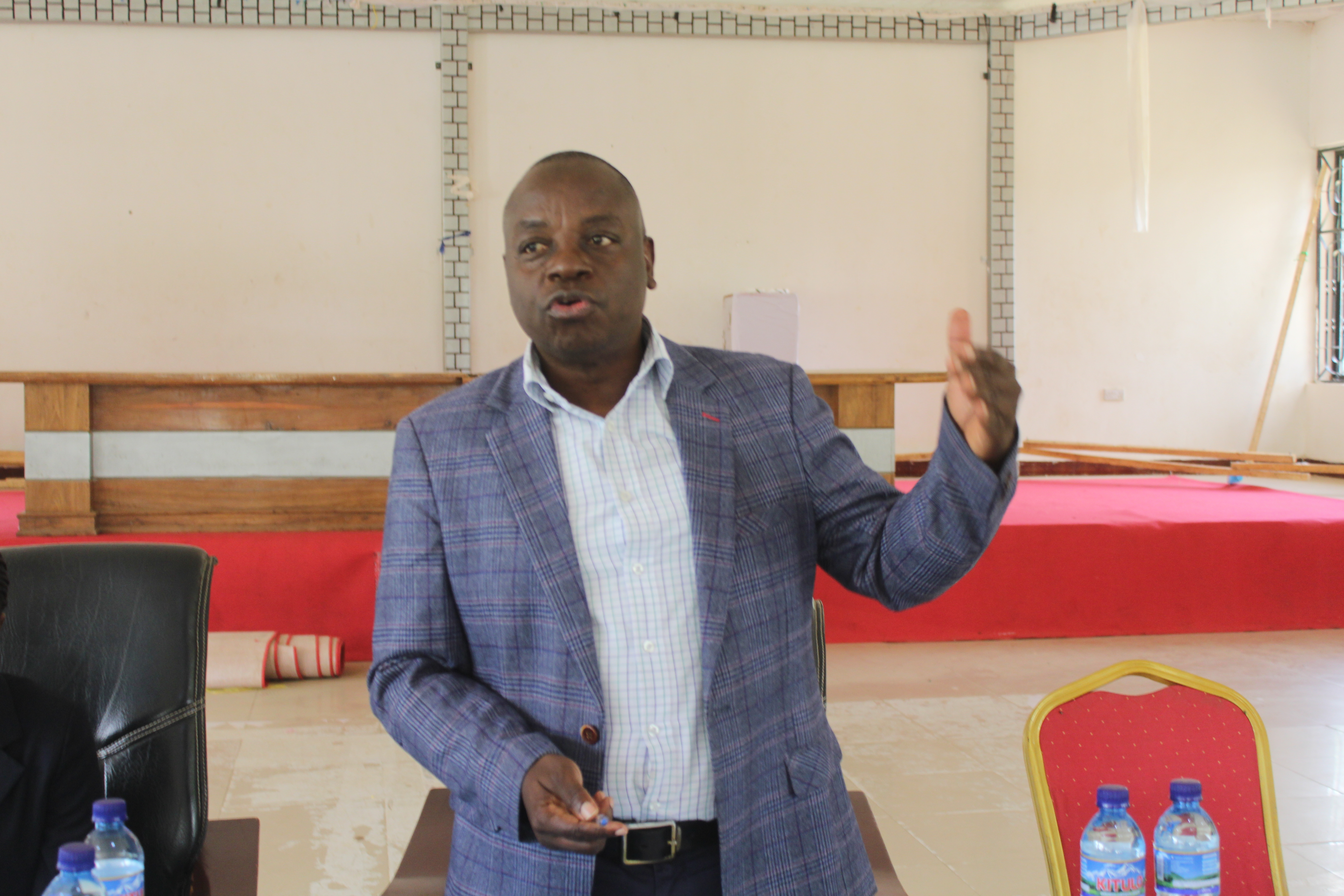 Mkuu wa Wilaya ya Chunya SACI. Mbaraka Alhaji Batenga akizungumza na wajumbe wa kamati ya afya ya Msingi wakati wa kikao cha kuwajengea uwezo juu ya bima ya Afya kwa wote kilichoketi katika ukumbi wa Mikutano wa Sapanjo Halmashauri ya Wilaya ya Chunya.