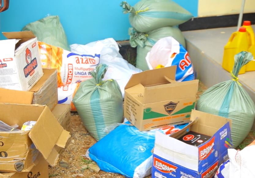 Baadhi ya misaada iliyokabidhiwa kwa wanafunzi wenye mahitaji maalum Shule ya msingi kibaoni ikiwa ni pamoja na Sabuni, Mchele , mafuta ya kupikia, madaftari, na vitu vingine .